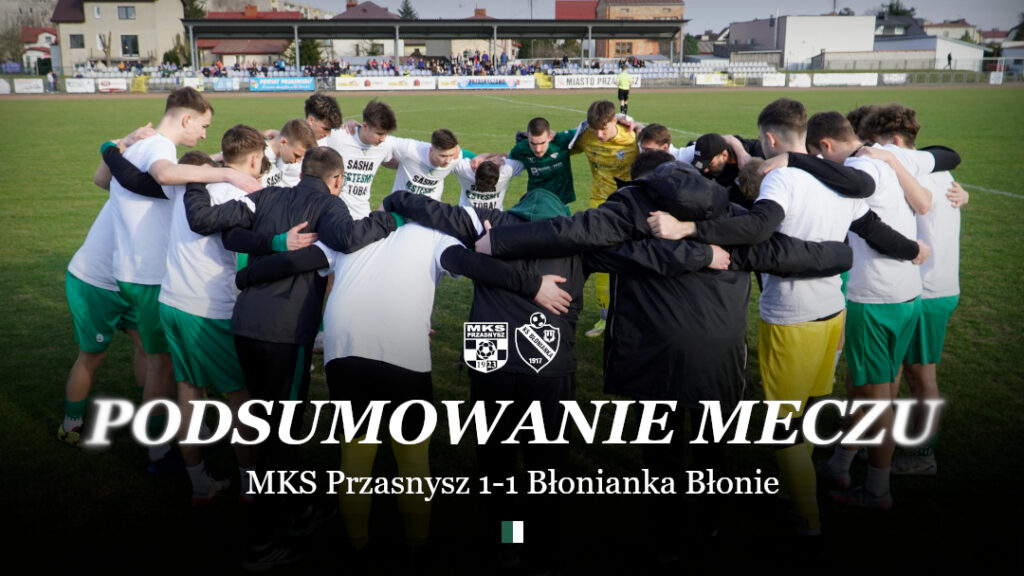Pierwsza połowa meczu przypominała nieco czwartkowe spotkanie barażowe reprezentacji Polski. W grę weszliśmy z entuzjazmem i pozytywnością, jednak tej wystarczyło na niecały kwadrans. Już w 11. minucie bramkę bezpośrednio z rzutu wolnego zdobył Tomasz Kamiński. Dzięki temu zespół gospodarzy mógł przedsięwziąć plan, w którym czuli się tego dnia bardzo dobrze – szczelna defensywa i czekanie na swoje okazje. Błonianka próbowała, od czasu do czasu naruszała przasnyski mur, ale w decydujących momentach brakowało lepszego wykończenia.